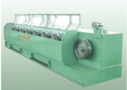 本企业专业设计的拉丝机产品是供有色金属及电线电缆等行业从ф17铜杆拉拔成ф8铜杆或从ф8铜杆拉拔成ф3、ф2.6、ф2或ф1铜丝及有色金属丝理想的设备,适用与上引法连铸机组配套使用,并可专业为用户配套设计供有色、黑色及合金材料拉拔圆线或扁线使用的拉丝机械,整个拉拔过程,冷却润滑性能良好,确保了成品丝质量。如采用直流电机调速或变频电机调速既方便了操作,又提高了生产效率,降低成本,且维修方便。本机收线机组配有象鼻式自动卸线机或倒立式收线机,拉拔过程中自动卸线、收线成圈,便于搬运或再深加工。